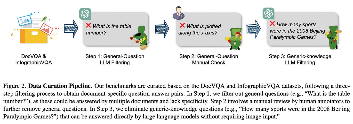 The method also includes a careful data curation process that ensures questions in the benchmark can only be answered by specific documents, eliminating ambiguity and making evaluation more meaningful.