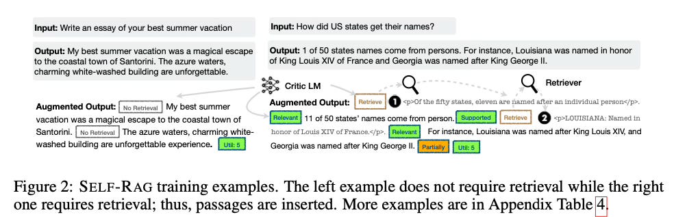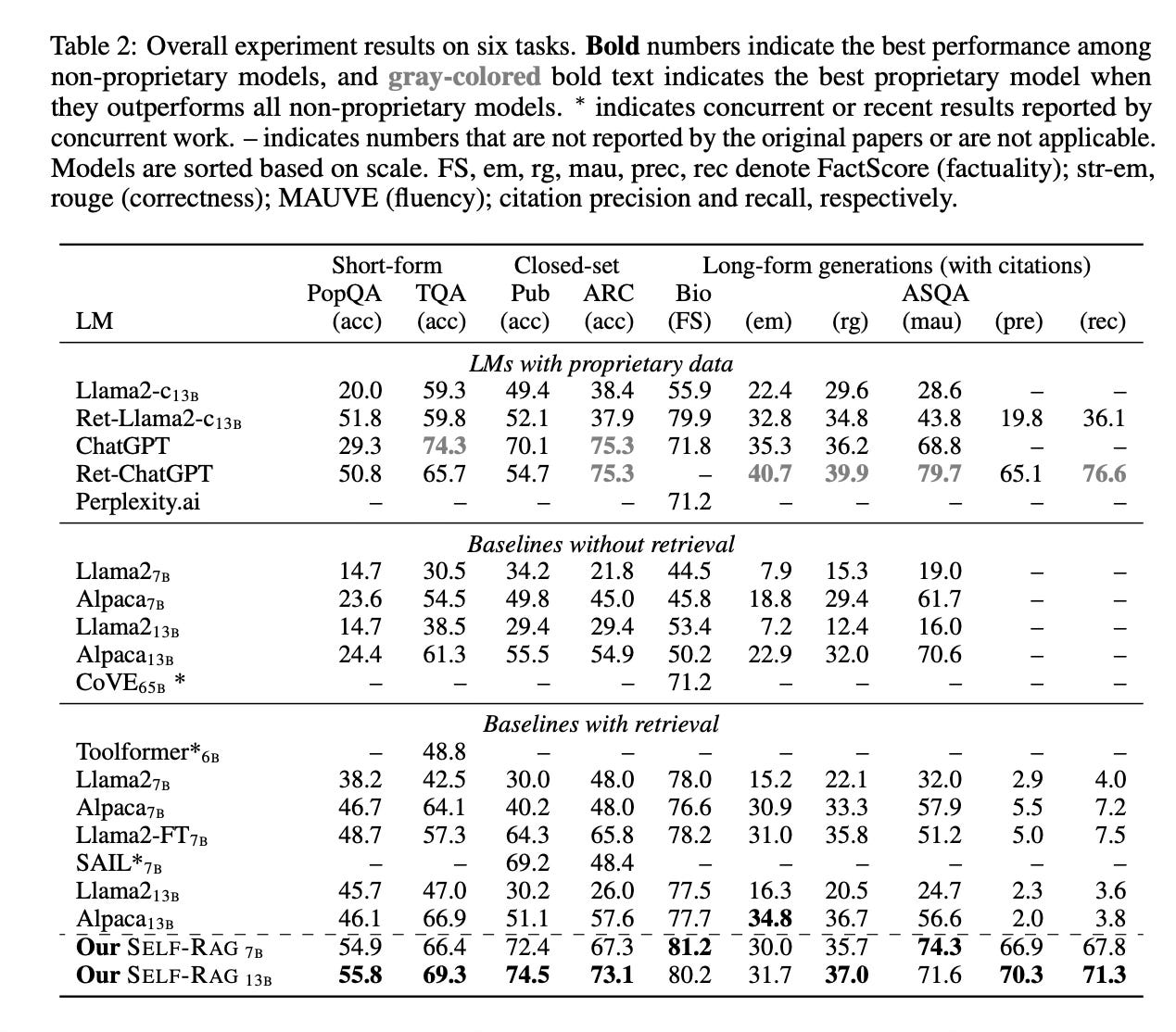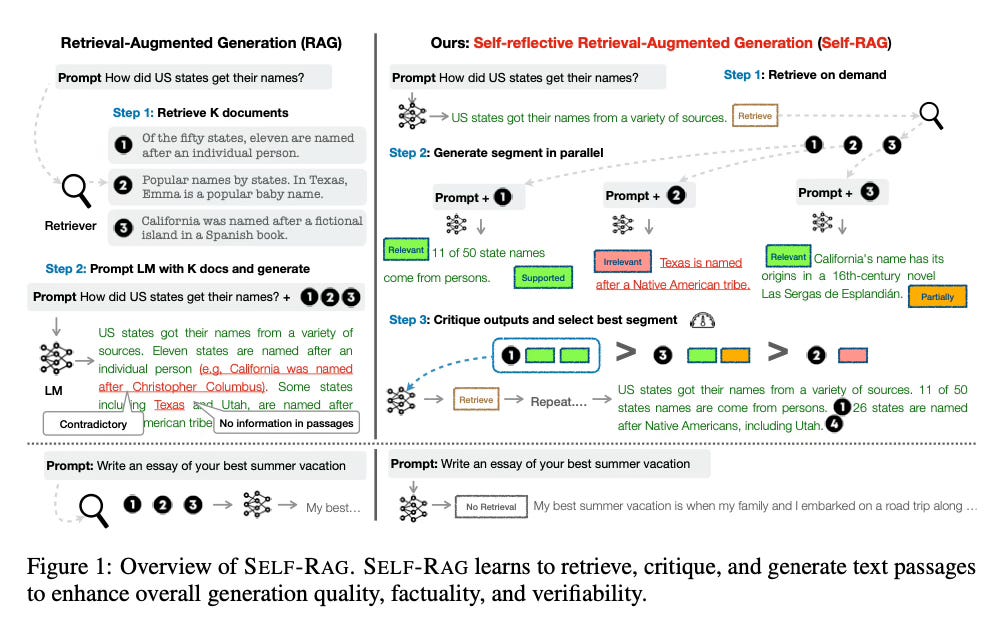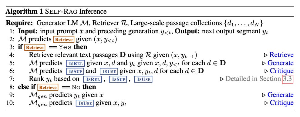 Asai, Akari, et al. "SELF-RAG: Learning to Retrieve, Generate, and Critique through Self-Reflection." arXiv preprint arXiv:2310.11511 (2023).